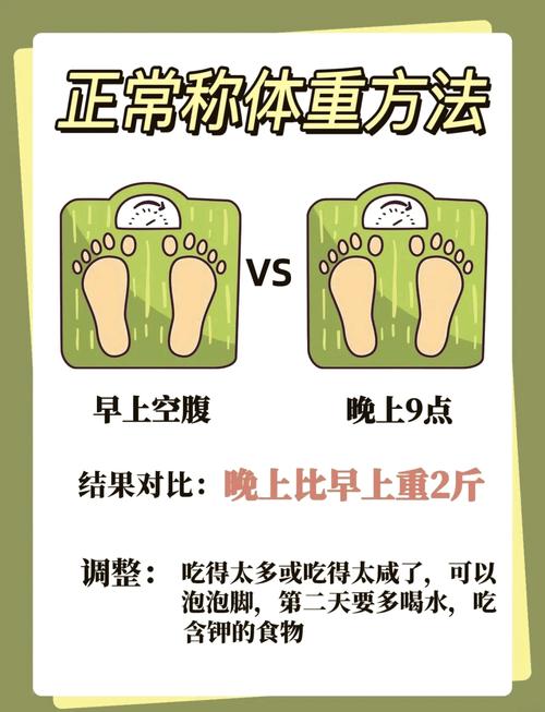 〖Two〗、将脚尖放在体重秤的中间位置,稍微向后一点,或者直接站在较前的位置,并将脚后跟位置留出,这些方法都可以使体重显示减轻。这是因为体重秤上通常有四个弹簧,如果你只踩到一部分,重量自然显示会减少。 早上称体重为什么通常会显得轻?早上测量的体重一般会比较轻,这是因为体内滞留的水分和食物较少。