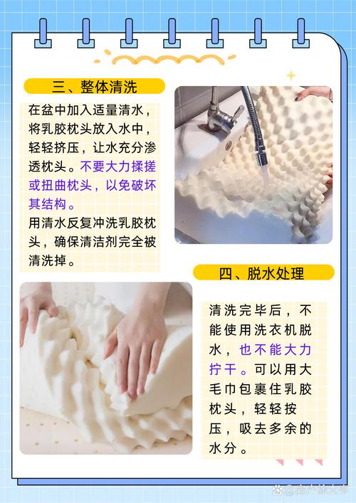 〖One〗、避免阳光直射。乳胶枕不宜长时间暴露在强烈的阳光下,因为阳光会使乳胶材质老化,导致枕头失去原有的弹性和舒适度。因此,应将乳胶枕放置在阴凉通风处,避免阳光直射。定期清洁。乳胶枕表面容易沾染污渍和灰尘,应定期清洁以保持其卫生。可以使用温和的清洁剂,以浸湿毛巾轻轻擦拭表面,然后晾干。