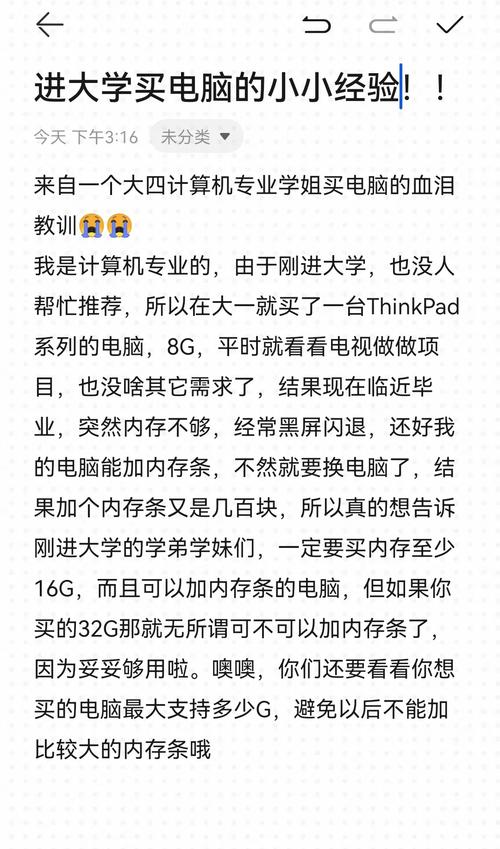如果所学专业对电脑依赖程度较高,如计算机科学、设计等专业,适时购置合适的电脑是有必要的。这些专业在学习过程中会频繁使用到电脑,如编程、设计绘图等,因此电脑是不可或缺的学习工具。学校环境及军训因素 大一新生通常要参加军训,期间几乎没有时间使用电脑,且整天不在寝室,电脑存在被偷的风险。