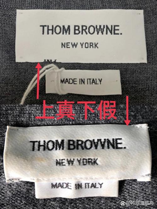 缝线质量:真品TB衣服的领标两端固定缝线干净平整,无歪斜或褶皱现象。而仿品的领标四角缝线针脚可能歪斜,且存在褶皱,固定缝线走针不工整,线头明显。三色带材质:正品的三色带材质紧密,颜色均匀,无混色现象。而仿品的三色带材质可能稀疏,且混有异色线,颜色不够纯正。