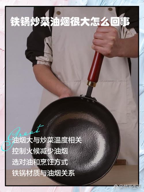 〖One〗、铁锅炒菜烟大的原因主要有以下几点:油量过多 铁锅炒菜时,如果油量过多,在高温下油会迅速蒸发并产生大量油烟。因此,为了减少油烟,做饭时应尽量控制油的用量,避免油量过多。火候过大 当锅中的油开始炸锅时,说明火候可能过大。此时应将火调小一些,再将食材倒入翻炒。