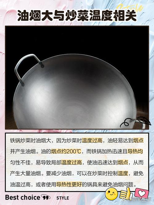 〖Five〗、铁锅炒菜油烟大主要与炒菜温度和油质有关。要想减少油烟,可以从以下几个方面着手:调整炒菜温度 控制火候:炒菜时,应将温度控制在适宜范围内,一般建议将温度控制在180度左右。过高的温度会导致油迅速升温并冒烟,从而产生大量油烟。避免油冒烟:千万不要等到锅中的油开始冒烟之后再放菜。