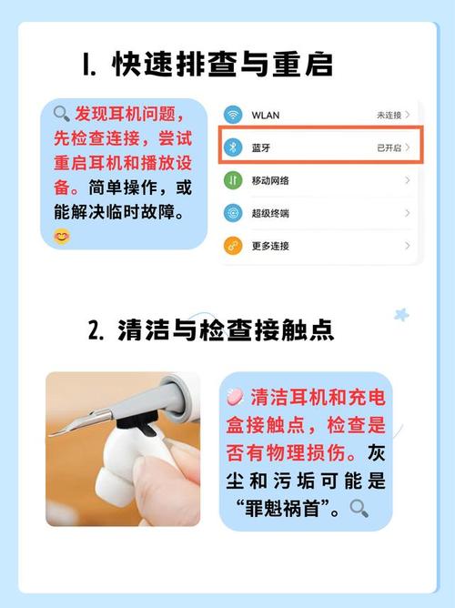 〖Three〗、检查连接,清洁耳机插孔,检查耳机线路。检查连接,确保耳机与手机或其他设备的蓝牙连接是正常,尝试重新连接蓝牙,或者将耳机与其他设备连接,看看问题是否仍然存在。清洁耳机插孔,耳机使用可拆卸式插孔连接到主体部分,检查插孔是否有脏污或灰尘。使用干净、柔软的棉签轻轻清洁插孔,确保有良好的连接。