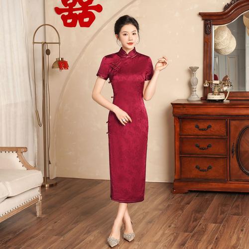 〖Two〗、酒红色旗袍搭配同色系的酒红色鞋子,能够营造全身上下统一的红色调,非常适合喜庆的场合,既和谐又庄重,这样的搭配在色彩上没有错误。 如果想要展现富贵气质,酒红色旗袍可以搭配金色鞋子。这种组合能够增添一份奢华感。 对于旗袍的搭配,可以根据旗袍的颜色来选取鞋子的颜色。