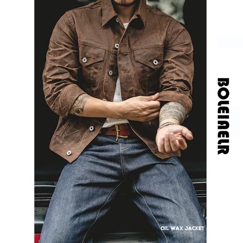 〖Four〗、油蜡夹克在初期的时候穿着会比较硬,随着体温的加热,慢慢驯服会呈现出最适合自己的版型,油蜡夹克有轻度防水效果,但是日常生活中不建议用水洗!干蜡夹克的蜡指的是在棉质帆布的表面涂上蜡油,使其具备防水性能。