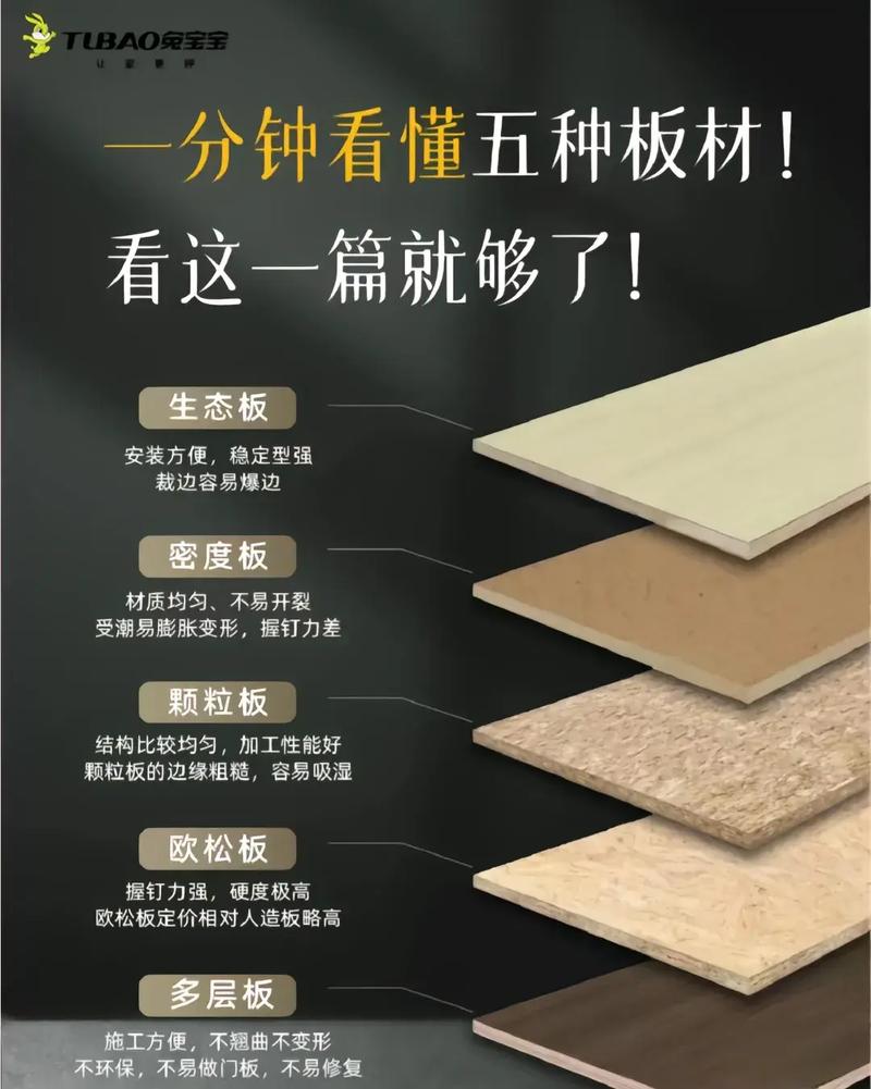 〖Two〗、兔宝宝板材E0级别的特点:兔宝宝板材达到E0级别,意味着其甲醛释放量非常低,符合甚至超过国家环保标准。这样的板材在装修过程中能更好地保障室内空气质量,减少对居住者的健康风险。 环保建材的重要性:随着人们对环保意识的提高,选取环保建材已成为一种趋势。