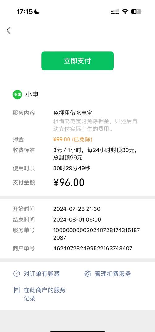 〖Four〗、共享充电宝是按照租用时间进行付费的,而不是按照电量收费。以下是关于共享充电宝收费的相关说明:收费方式:共享充电宝的收费主要是根据租用时长来计算的,大多按小时收费。每家门店的收费标准可能不同,费用从15元/小时不等,具体以扫码后显示为准。