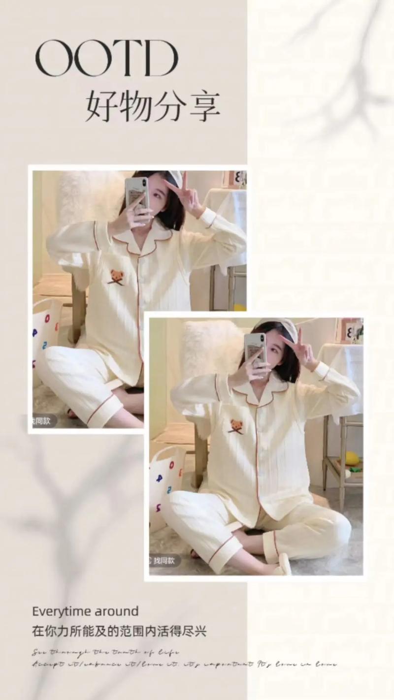 〖Two〗、纯棉睡衣的优点:柔软舒适:纯棉睡衣以其天然的柔软性和亲肤性著称,对皮肤无刺激,适合各种肤质。透气性强:纯棉材质具有良好的透气性,即使在夏季也能保持身体的干爽。保暖性好:在冬季,纯棉睡衣也能提供一定的保暖效果,防止寒气侵袭。