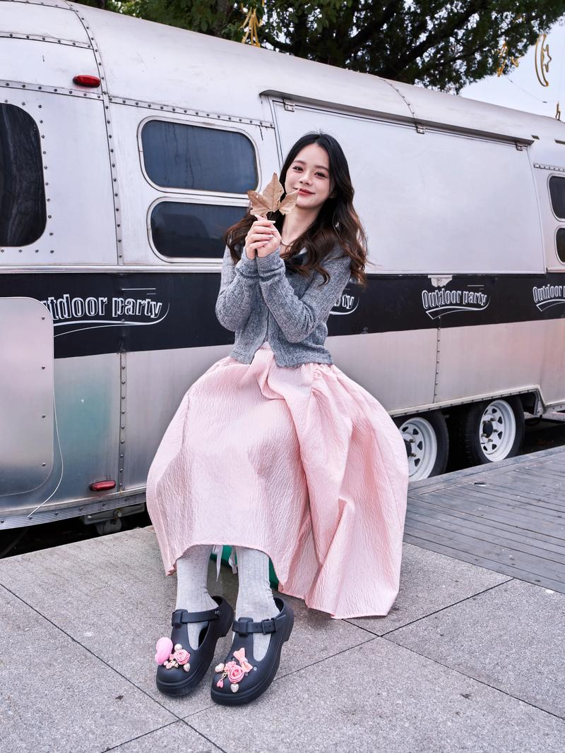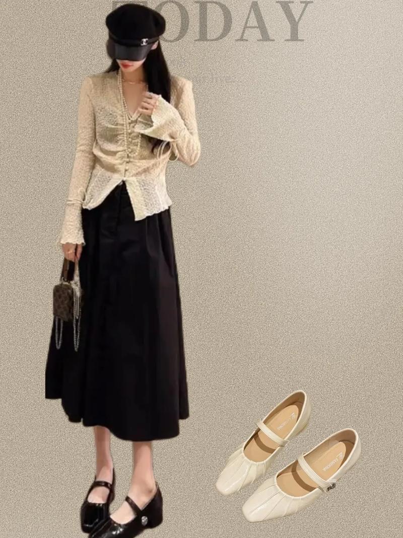 白色玛丽珍单鞋 + A字裙 A字裙选取:选取一条高腰的A字裙,长度可以是及膝或稍微过膝。颜色上可以选取经典的黑色、海军蓝或者柔和的粉色、米色等。材质方面,丝绸和雪纺是很好的选取,因为它们能增加整体造型的飘逸感和高级感。