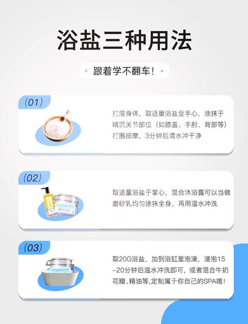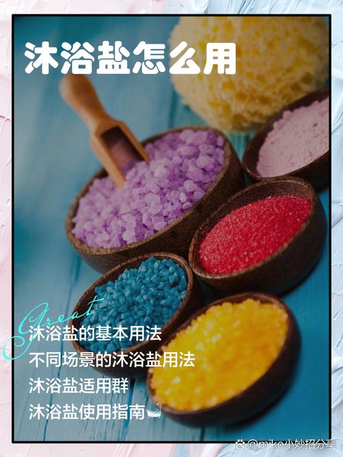 〖Two〗、止痒方面,浴盐能缓解因细菌引起的皮肤瘙痒,但使用时力度需控制,避免划伤皮肤。镇静安神方面,浴盐中的香料能安抚情绪,舒缓压力,改善睡眠。补充营养方面,浴盐含丰富营养,可改善肌肤状态。减肥方面,部分浴盐具有减肥效果,结合按摩能紧实皮肤。然而,过度使用浴盐可能带来副作用。