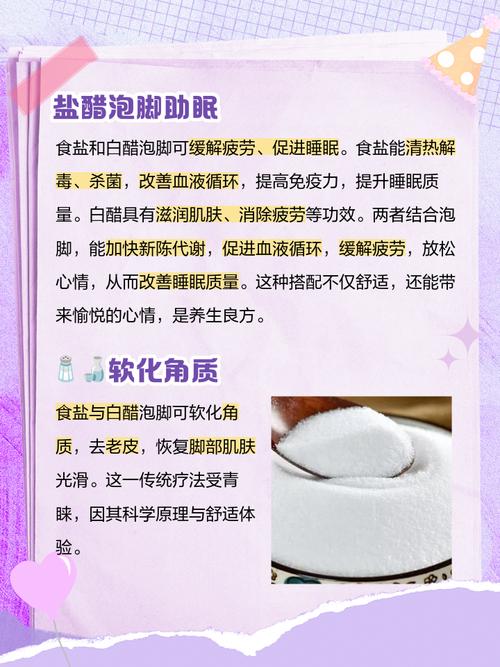用盐洗澡的好处主要包括以下几点:深层清洁与消炎杀菌:用盐洗澡可以深层清洁肌肤,有效消炎、杀菌,并能快速治愈小伤口,修复表皮。促进血液循环:盐水沐浴能提高温热浴的效果,促进血液循环,有助于缓解疲劳。止痒作用:食盐水具有杀菌作用,能有效改善出汗后身体发痒的情况。