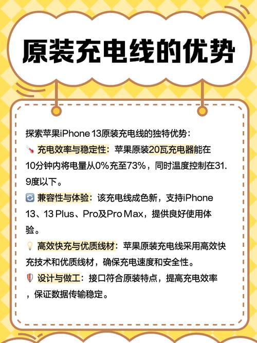 〖Three〗、综上所述,苹果13自带的数据线是一条Type-C to Lightning接口的数据线,支持PD快充协议,但需要搭配支持快充的充电头一起使用才能实现快速充电功能。