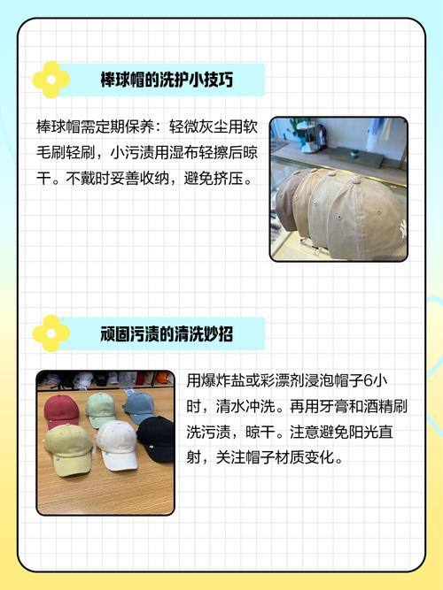 〖Two〗、鸭舌帽子不建议用洗衣机洗。以下是关于清洗鸭舌帽的详细建议及原因:避免洗衣机洗涤的原因 变形风险:鸭舌帽的帽型和帽舌设计较为特殊,洗衣机在洗涤过程中容易对帽子造成挤压和拉扯,从而导致帽子变形,影响佩戴效果和美观度。