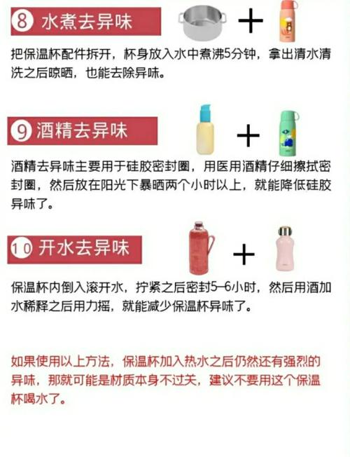 〖Two〗、保温杯为何会散发出异味?主要因素包括材质、工艺以及使用和存放习惯。不锈钢、陶瓷和塑料等不同材质的保温杯,可能会因为残留的水分或化学物质而产生异味。另外,如果长时间未清洗或存放不当,保温杯内部可能滋生细菌,导致异味的产生。面对保温杯异味的问题,我们可以通过一些简单的方法来解决。