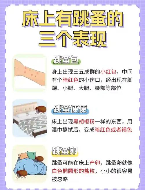 跳蚤会长期藏在床上:跳蚤确实有可能长期藏在床上,特别是如果床上有它们的食物来源。成虫跳蚤甚至可以在不进食的情况下藏匿长达12个月,等待机会吸血。酒精不能杀死跳蚤:虽然酒精理论上可以杀死跳蚤,但这需要将跳蚤长时间浸泡在酒精中。如果只是简单地将酒精撒在房间或床上,对消灭跳蚤是没有效果的。