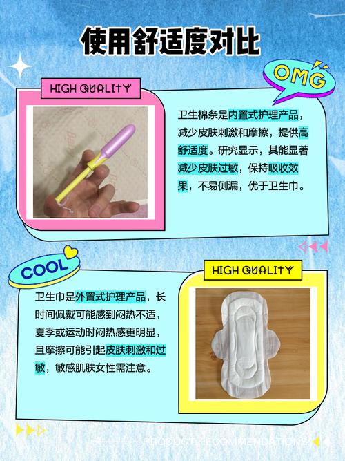 〖Three〗、综上所述,卫生巾和卫生棉条各有优缺点,选取哪个更好取决于个人需求和偏好。女性应根据实际情况选取适合自己的经期卫生用品,并注意产品质量、使用方法和环保意识。