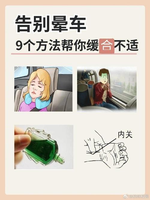 〖Three〗、多加训练:经常性坐车,通过反复训练增加对晕车症状的耐受性,锻炼前庭功能。服用晕车药物:在上车前半个小时服用晕车药物,如乘晕宁或晕动片等。也可以在肚脐眼处贴晕车贴,以缓解症状。调整饮食和睡眠:上车前避免进食过饱或处于极度饥饿状态。临行前保证充足的睡眠,保持放松的心态。