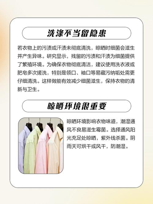 未洗净的残留物 衣服在清洗过程中,如果洗涤剂或污渍没有完全冲洗干净,这些残留物在潮湿环境中容易滋生细菌,进而产生异味。尤其是汗液、皮脂等人体分泌物,以及食物残渣等,都是细菌滋生的温床。这些细菌在衣服干燥过程中继续活动,释放出不良气味,导致衣服晾干后有馊味。