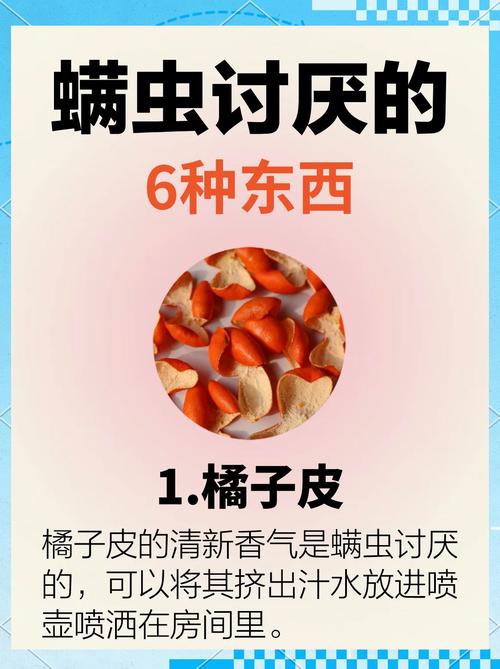 〖One〗、家中有不少天然物品可驱赶螨虫。一是薄荷。薄荷散发的特殊气味让螨虫难以忍受,可在家中放些薄荷盆栽,或用薄荷叶煮水后喷洒在易生螨处。二是柠檬。柠檬的酸性成分有一定除螨作用,将柠檬汁加水稀释后擦拭家具,能减少螨虫滋生。三是艾草。艾草燃烧产生的烟雾可驱赶螨虫,把艾草晒干后点燃,让烟雾在室内弥漫一会,但要注意防火。