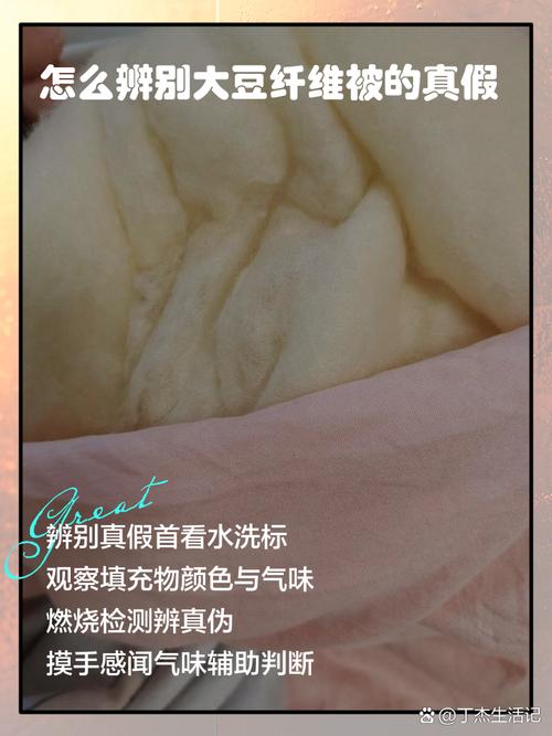 〖Five〗、首先,从色泽上看,大豆纤维被本身色泽偏黄,如果纤维含量高,颜色会更加明显。若被子颜色过于鲜艳或不自然,可能是经过染色或添加了色素,需要谨慎购买。其次,纤维含量也是一个重要指标。理想的大豆纤维含量应在20%『5』0%之间,这样既能保证被子的吸湿透气性和保暖效果,又不会让被子变得板结或变形。