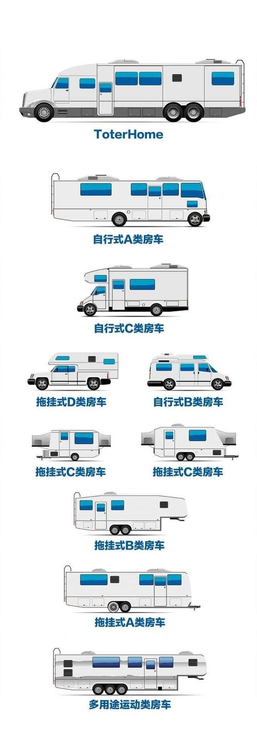 A型房车:A型房车是房车家族中具有自身驱动能力的庞然大物,一定程度上我们可以认为这类房车是所有房车种类中最豪华、舒适的一种;面积一般可达40平米左右。B型房车:该类房车最大的特点是小巧灵活,外表含蓄不张扬,兼可城市日常使用也可作为短途旅行、生活工具。