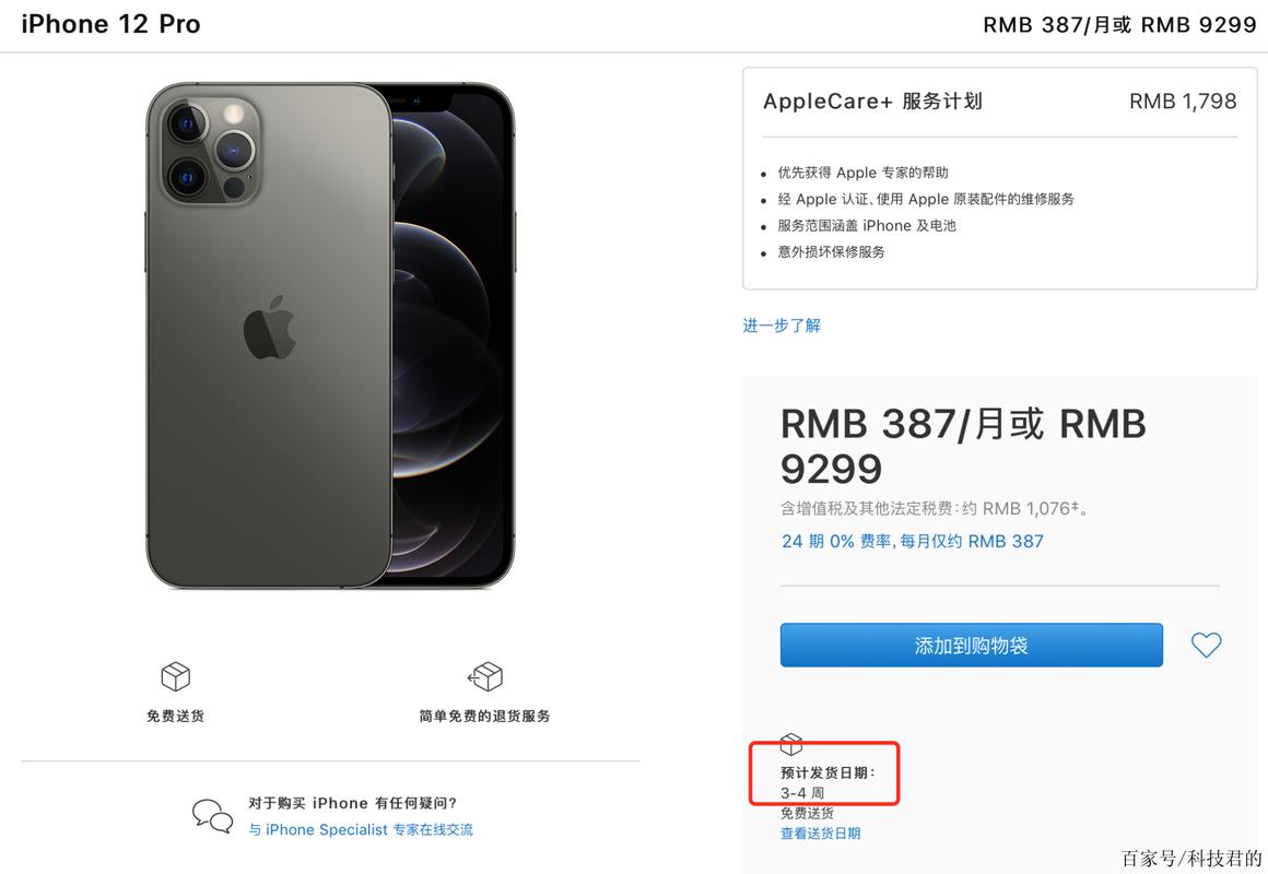 iPhone 12 Pro的起售价为8499元,具体费用根据存储容量不同分为三个档次:128GB版本:售价8499元,是iPhone 12 Pro的入门配置,适合对存储需求中等的用户。256GB版本:售价9299元,提供更大的存储空间,适合需要存储大量照片、视频或安装多款应用的用户。