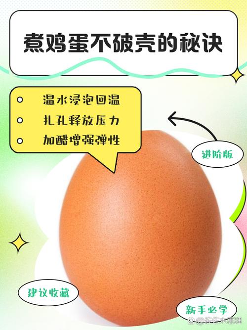 〖Six〗、煮鸡蛋不破壳的方法主要有以下几种:事先冷水浸泡法:在煮鸡蛋前,先将鸡蛋放入冷水中浸泡一段时间。浸泡后的鸡蛋再放入热水中煮,这样可以有效防止蛋壳破裂,同时也使得剥壳变得更容易。中火煮鸡蛋法:使用大火煮鸡蛋容易导致蛋壳内空气急剧膨胀而破裂。