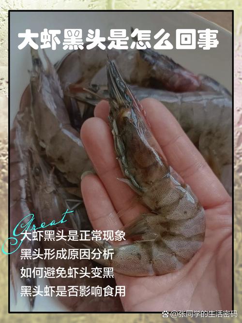 〖Four〗、虾头发黑主要是虾体内生化反应、保鲜方式及自身特性共同作用的结果。 酶促反应导致氧化发黑 虾头集中了肝脏、消化系统等器官,含有丰富酪氨酸酶。虾死亡后,酶活性迅速催化酪氨酸生成黑色素,头部与空气接触面积大,氧化速度更快。这种现象类似苹果切开后的褐变反应,属于自然生理变化。