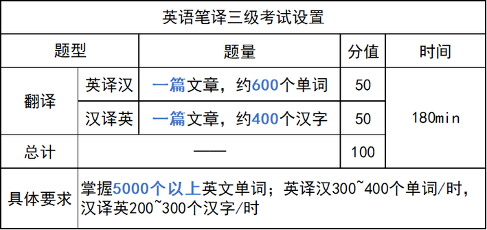 〖One〗、CATTI三级笔译:属于初级水平,大致相当于专业八级左右的水平。CATTI二级笔译:属于中级水平,是翻译硕士(MTI)毕业的水平和要求。词汇量要求 CATTI三级:要求词汇量5000+。CATTI二级:要求词汇量8000+。这一差距直接体现在考试的词汇语法知识、阅读理解以及完形填空等部分。
