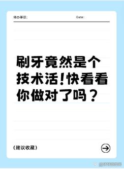 〖One〗、刷牙确实是个技术活 牙齿作为我们吃山珍海味的第一道门,其重要性不言而喻。而刷牙作为保护牙齿、清洁牙齿的重要步骤,更是一门需要讲究技巧的活动。刷牙的频率 刷牙需要早晚各刷一次。早上刷牙能有效去除牙齿表面在夜间逐渐形成的牙菌斑,保持口腔清新。