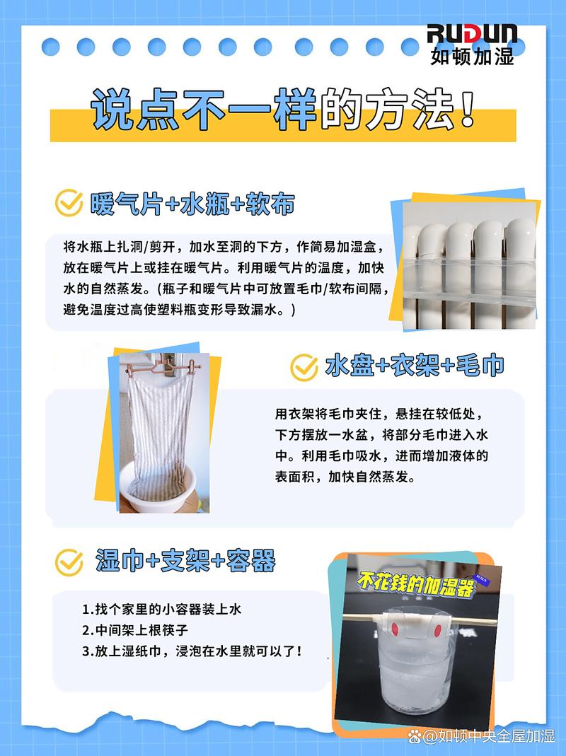 屋内干燥时,科学加湿需结合环境特点和使用需求,以下是最优方案及注意事项优先选取的加湿方式 超声波加湿器:利用高频振动将水雾化成微小颗粒,加湿速度快、噪音低,适合卧室、客厅等大面积空间,且可搭配香薰片提升舒适度。