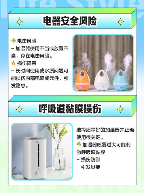 〖One〗、坏处方面:若加湿器使用不当,比如加湿过度,会使室内湿度过高,容易滋生霉菌、细菌等微生物,可能引发呼吸道感染等疾病。此外,长期处于高湿度环境,还会让人感觉闷热、憋闷,影响舒适度。而且一些加湿器若不及时清洁,水箱中的水易成为细菌滋生地,随着水雾扩散到空气中,危害人体健康。