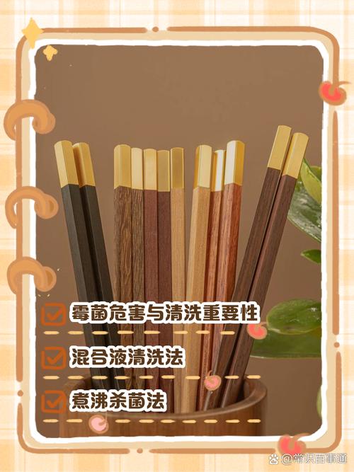 〖Four〗、首先,可以采用肥皂和酒精溶液进行初步处理。将适量的肥皂和酒精混合成2%的溶液,用此溶液擦拭筷子表面,以去除表面的污垢和油脂。随后,使用3%『5』%的次氯酸钠或过氧化氢溶液进行二次擦拭,以进一步增强清洁效果。最后,用清水彻底清洗筷子,确保残留物被彻底清除。另一种方法是利用盐水和米饭的清洁作用。