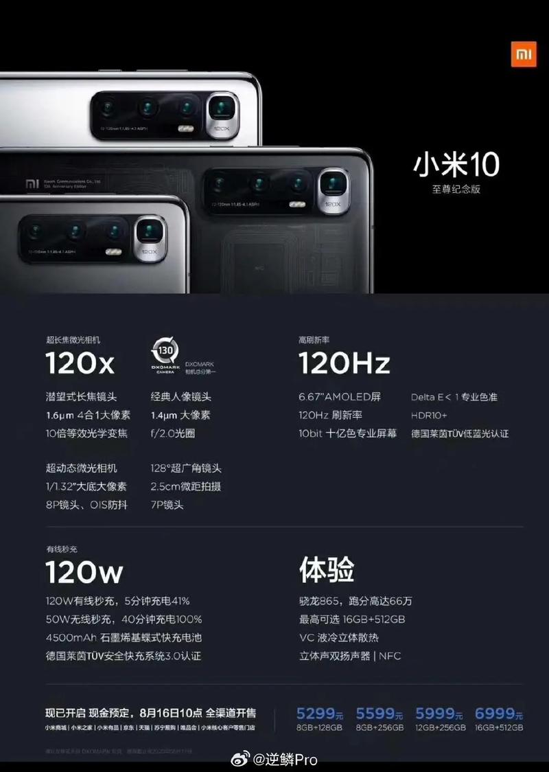 〖One〗、小米10至尊纪念版的费用从5299元起,提供了120倍超长焦相机、120W快速充电、120Hz高刷新率屏幕以及DxOMark全球排名第一的相机性能。该机型于8月16日开始销售,并已开放预订。 外观设计:小米10至尊纪念版采用了全新的高端设计语言,并致敬了小米过去十年的经典设计。