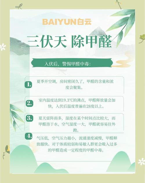 〖Three〗、度高温下,甲醛在三个月内的挥发速度是比较快的,但仍然不能完全挥发干净。以下是具体分析:高温加速挥发:40度的高温会显著加速甲醛的挥发速度,这是因为高温增加了分子运动的速率,使得甲醛分子更容易从装修材料中逸出。