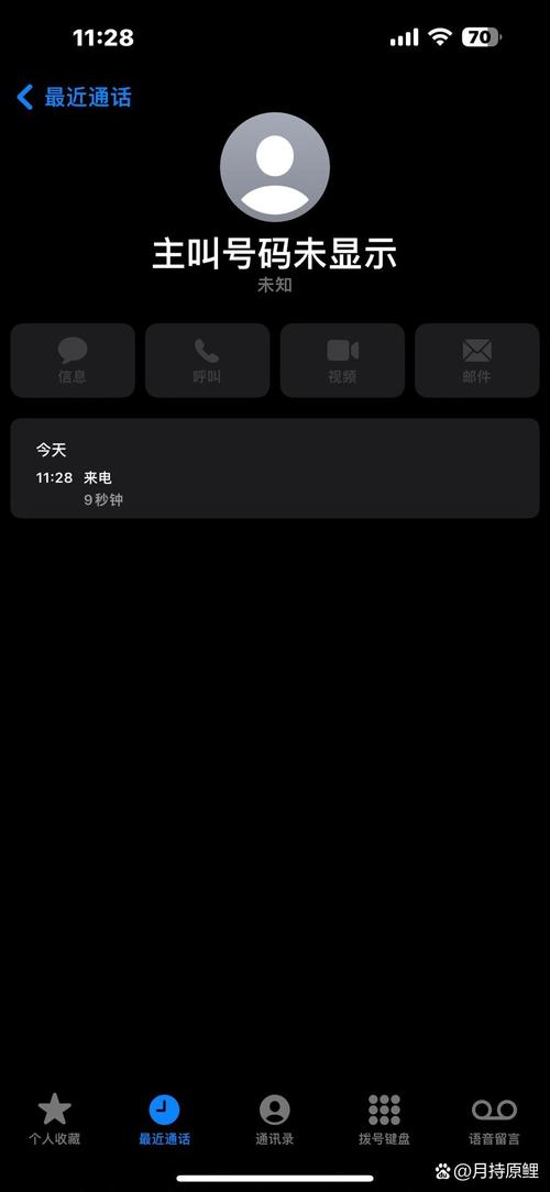 手机来电显示主叫号码未显示,通常是由于以下原因造成的:对方使用了隐藏号码功能 部分手机用户为了保护个人隐私,会设置隐藏号码功能。当对方拨打你的电话时,你的来电显示界面就会显示主叫号码未显示。这是因为对方通过特殊技术手段隐藏了自己的真实号码。