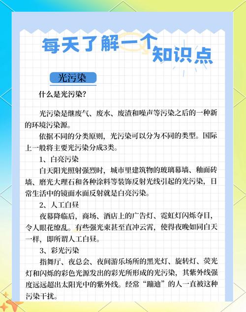 〖Six〗、光污染的判断标准 光污染主要指人造光源的过强、过杂或设计不当,导致影响生态、天文观测或人体健康。例如商业区整夜亮如白昼的广告屏属于光污染,而合理设计的路灯照明则不属此类。