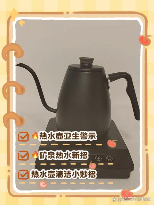 高温消毒:热水壶在烧水过程中,水温会达到沸点,这个温度足以杀死大部分细菌和病毒。因此,通过烧2~3次水,可以对热水壶进行一次全面的高温消毒,确保其内部环境的清洁。操作建议 首次烧水倒掉:建议首次烧水后,将水倒掉,不进行饮用。这样可以更有效地去除热水壶内部的杂质和异味。