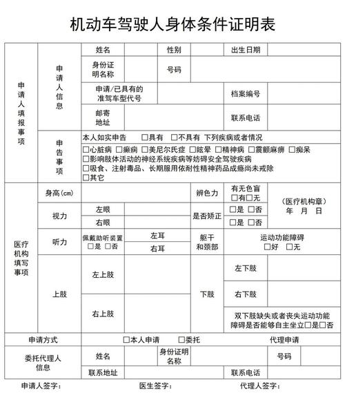 〖Six〗、驾驶人身体条件证明是机动车驾驶人必须提交的一份体检表,用于证明驾驶人身体条件符合驾驶机动车的要求。以下是关于驾驶人身体条件证明的详细解释:体检要求:驾驶人必须到县级以上医院或团级以上医院进行体检,以获取这份证明。