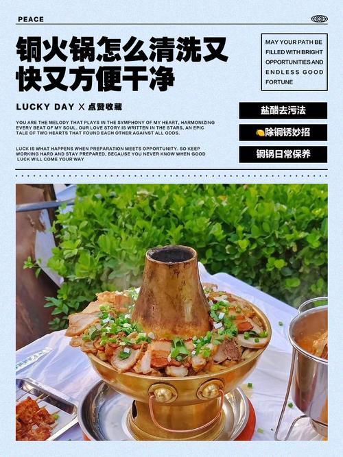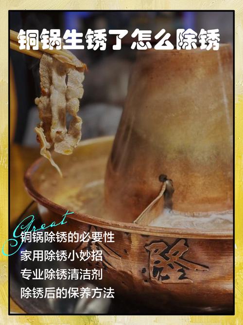 〖One〗、涮羊肉的铜锅上生锈了,可以采用以下几种方法去除锈迹:柠檬加水煮法 将铜锅内加入适量的清水,然后切几片新鲜的柠檬放入锅中,开火煮沸。柠檬中的酸性成分能够有效分解铜锅上的锈迹,煮一段时间后,关火让铜锅自然冷却,之后用清水冲洗干净即可。这种方法既环保又安全,不会对铜锅造成损害。