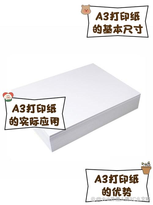 〖Three〗、A3纸是一种世界通用标准A3规格的纸张,其样子为长方形,具体尺寸为297mm×420mm。以下是关于A3纸的详细说明:尺寸特点:A3纸的尺寸是A4纸长度的2倍,即A4纸拼接起来可以形成A3纸的大小。规格系列:A3纸属于A系列纸张规格,该系列纸张按照长度方向对开的方式得到不同规格,如A0、AA2等。