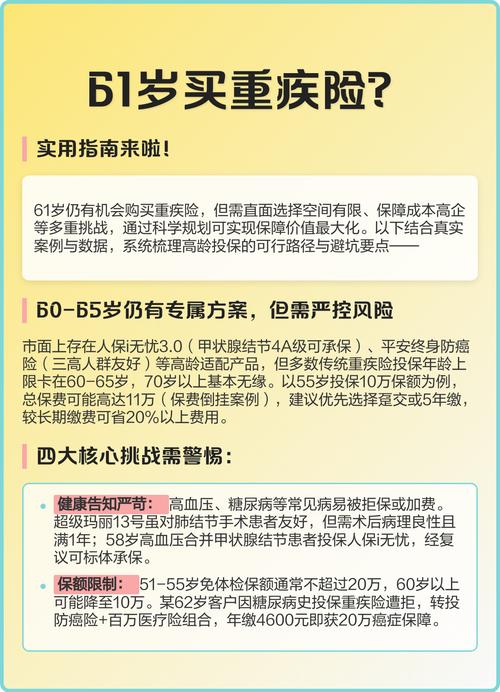 综合建议:若经济条件允许,20『3』5岁是购买重疾险的最佳窗口期。此阶段既能享受低保费、长保障的优势,也能规避未来健康恶化导致的投保障碍。若已超过40岁,仍建议尽早投保,但需重点关注健康告知要求,并可能需接受较高保费或部分责任除外。