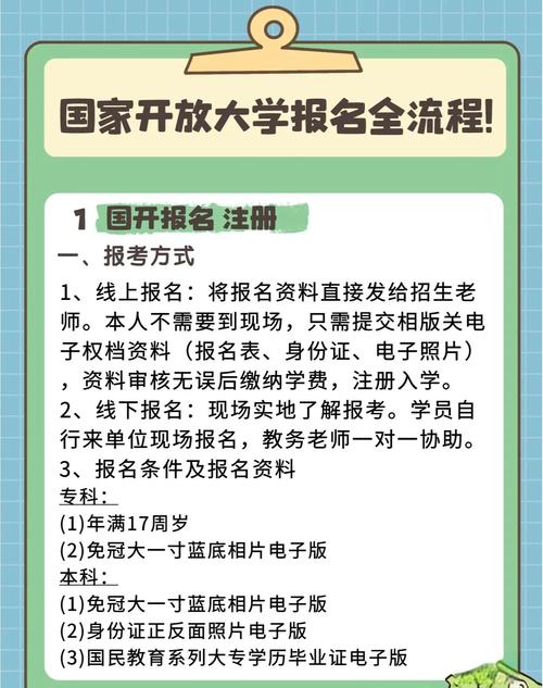 国家开放大学是中国教育部直属的高等教育机构,专为成人教育而设立,致力于提供开放、灵活的远程教育模式。其注册流程如下:报名条件:年满17周岁。专科生需提供高中或中专毕业证明,本科生则需专科毕业证书。报名材料:蓝底照片。身份证。个人信息。
