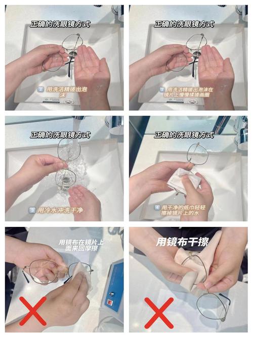 核心方法:日常清洗眼镜需避免划伤镜片,推荐使用中性清洁剂与柔软布料。理解了眼镜清洁的关键在于保护镜片后,具体操作可分三步: 基础冲洗:先用清水冲掉镜片表面灰尘,避免直接擦拭导致颗粒刮花镀膜。若油污较重,可滴中性洗洁精轻揉镜片,随后用流动水彻底冲净。
