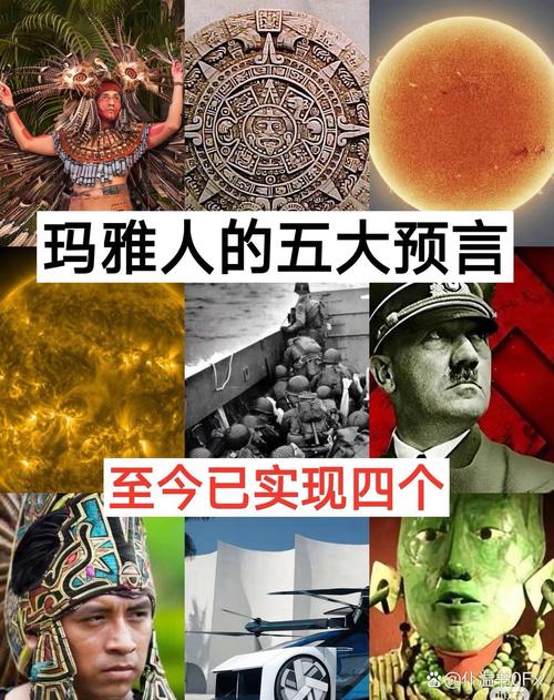 〖Four〗、玛雅人提出的五大预言如下: 玛雅文明的终结:玛雅人预言自己的文明将会有一个终结的时刻。他们相信《豹的预言书》中的记载,坚定地接受自己种族灭亡的命运。 科技的出现:玛雅人预言在未来的某个时代,将会出现汽车、飞机、火箭等高科技产品。
