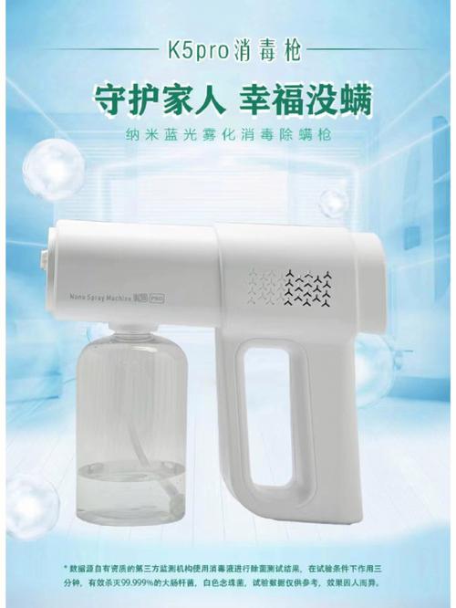 〖One〗、赞璐桐蓝光纳米酒精消毒喷雾枪,做工精良,外观美观,喷雾调节灵活。 赞璐桐K5酒精消毒枪喷雾器,操作简单,方便消毒,充电方便。 INN PIGK5pro,性价比高,使用体验好,推荐购买。 FREE FROGK5Pro,拥有无线便携、适用多种消毒水、多挡调节的优势,质量不错。