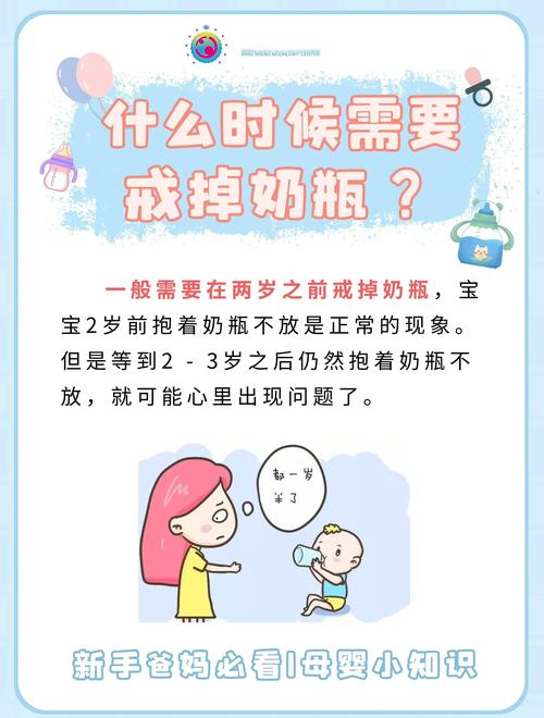 〖Four〗、宝宝停止使用奶瓶的年龄因人而异,但通常建议在12至18个月期间开始逐步戒断奶瓶,最晚不超过2岁。以下是具体借鉴和建议: 关键时间节点12个月左右:此时宝宝已添加辅食,可尝试用吸管杯或宽口杯替代奶瓶,减少对奶嘴的依赖。