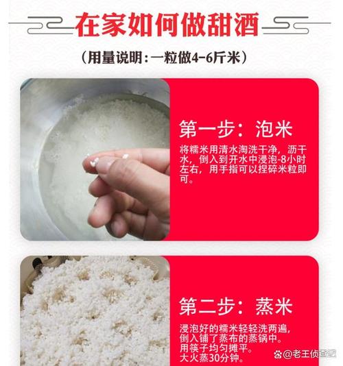 〖One〗、将糯米洗净,用清水浸泡一夜,然后蒸熟。 对发酵容器和所有工具进行消毒,包括双手,使用开水反复冲烫。 将糯米摊凉至不烫手,然后加入酒药,铺成几层,具体量根据米饭的量来确定。 加入冷开水,将米饭和酒药拌匀。 在中间挖个洞以观察是否出酒,并保持温度在35度左右,让米酒发酵1『2』天。