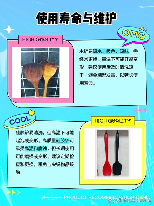 所以,木铲和硅胶铲各有各的用途和优点,具体选取哪种铲子还要根据你的实际需求来决定哦!如果你喜欢保留食物原汁原味,那么木铲可能更适合你;如果你需要频繁清洁且在高温烹饪中使用,那么硅胶铲可能更适合你。