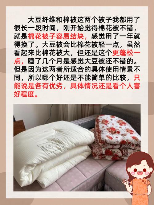 我认为大豆纤维被和羊毛被各有优缺点,选取取决于个人需求。大豆纤维被耐久、费用低、可机洗,但本质是化学纤维;羊毛被恒温、透气、保暖,但可能厚重、有异味且不可水洗。